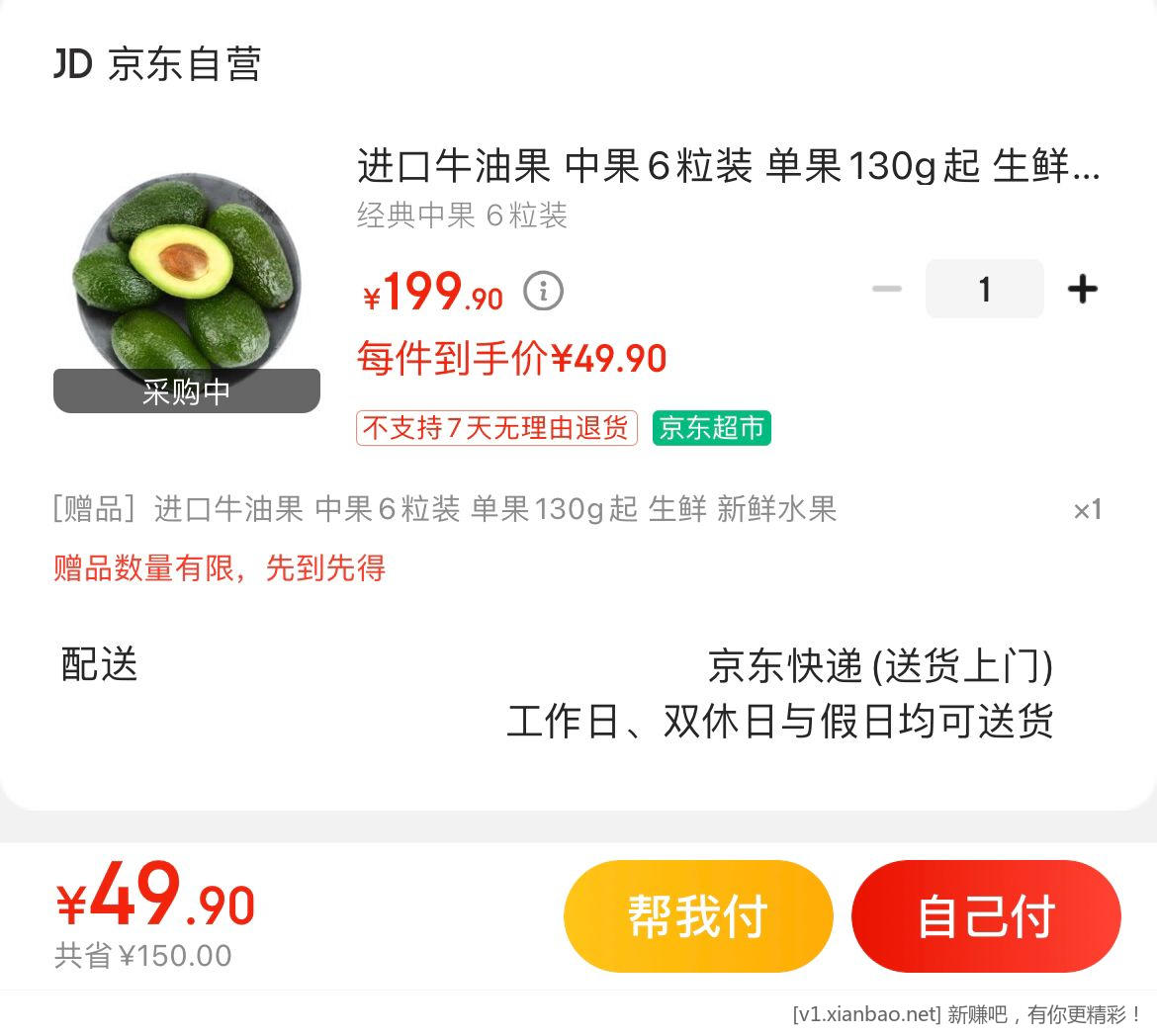 京鲜生 进口牛油果 中果6粒装 单果130g起