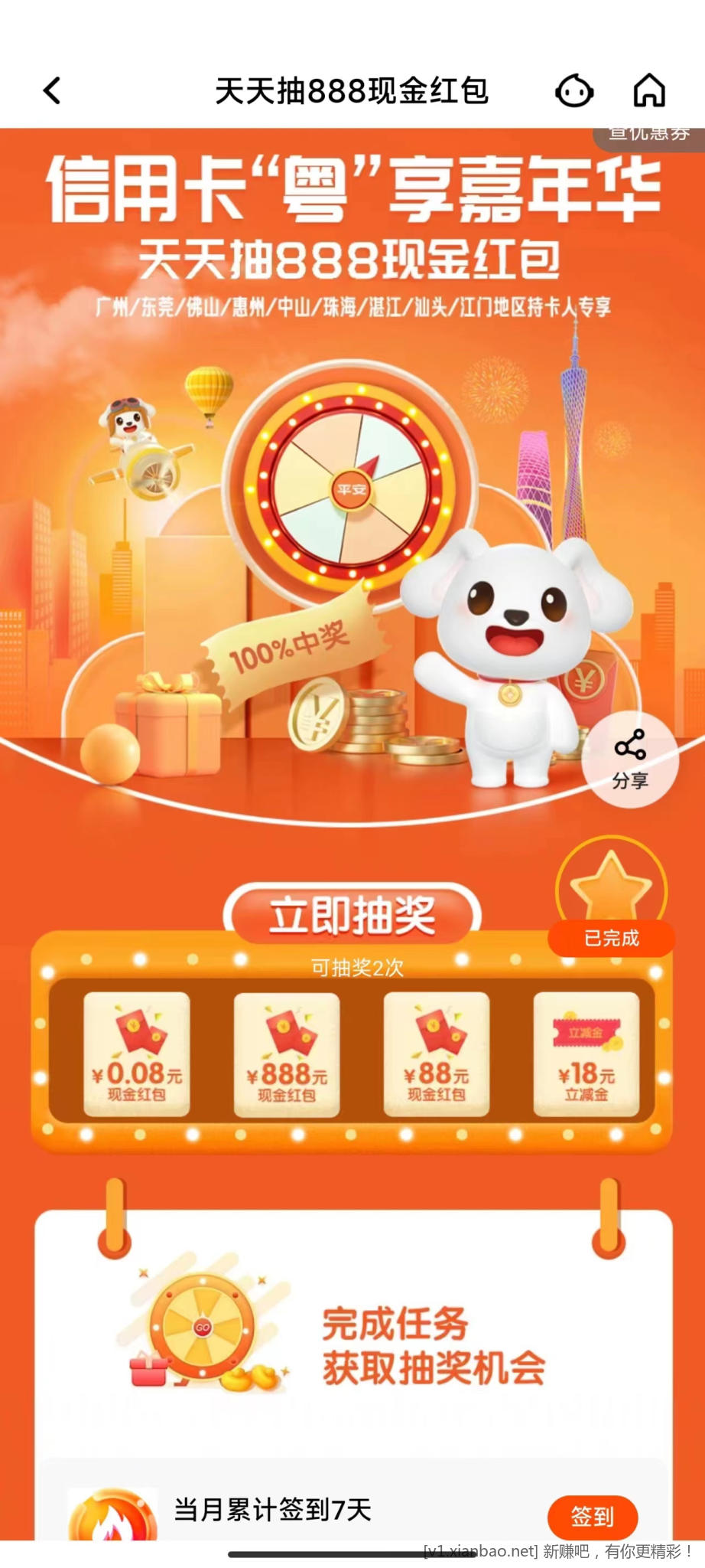 ②平安 广东部分xin卡“粤”享嘉年华 天天抽888现金 100%必中