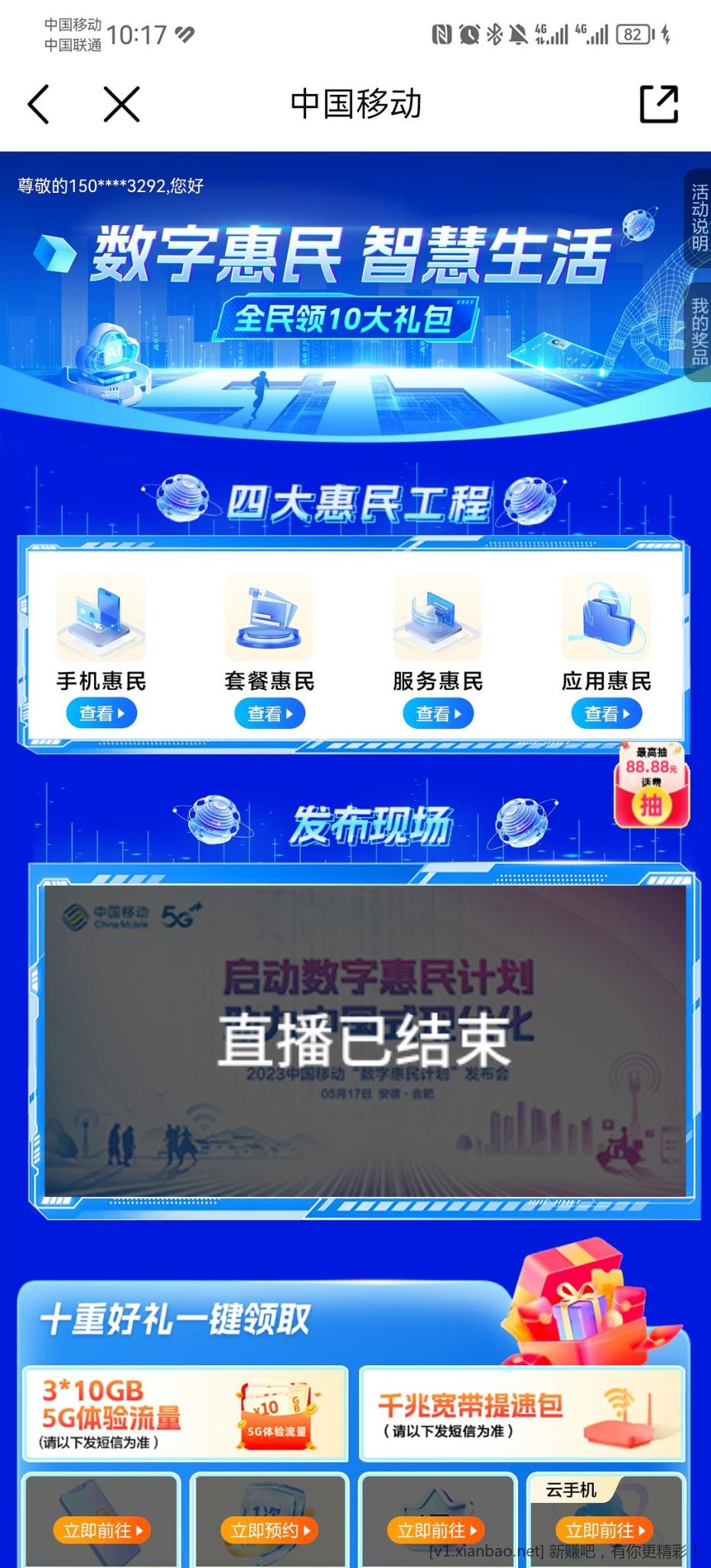 右侧红包抽话费,可以抽两次下方十重好礼领流量,收到短信说仅是5G可用