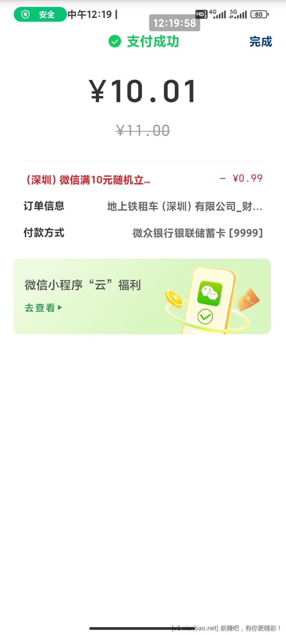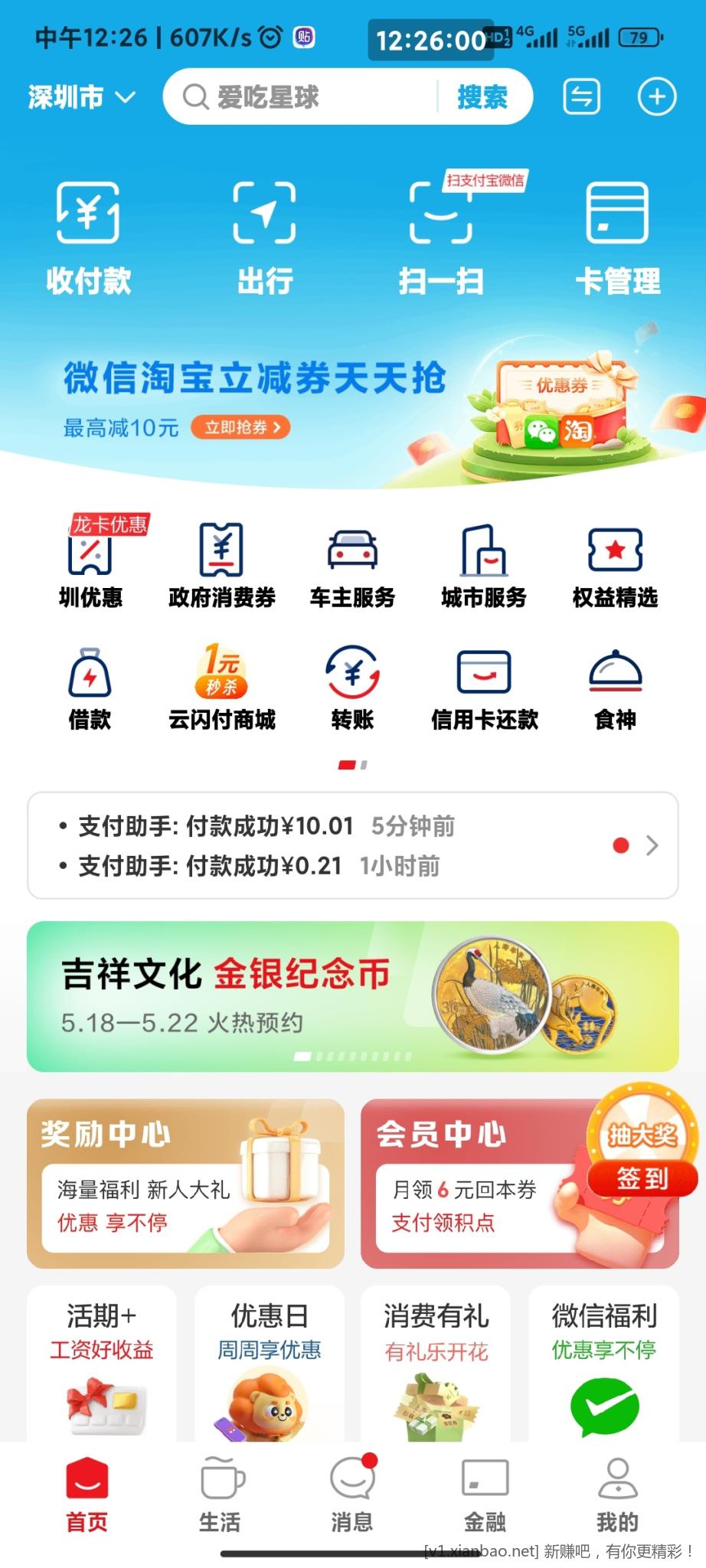 深圳云闪付 淘宝/微信小程序10-x优惠券