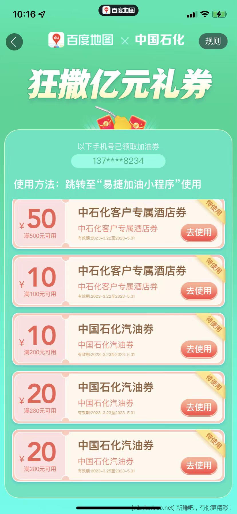 3、注:实际支付的时候需要多次步骤选中礼券才能抵扣(需要95以上的油)
