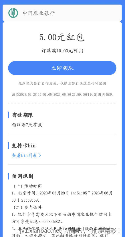 5月19日 农行 支付宝 xing/用卡 红包5X2