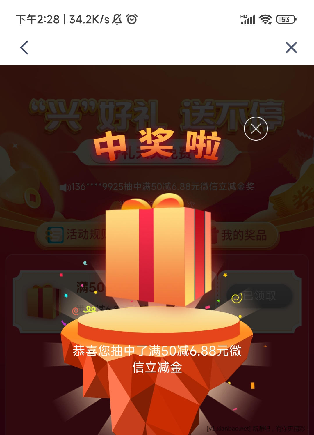 兴业银行app,查看消息,找到图片点进去领立减金,可能受邀