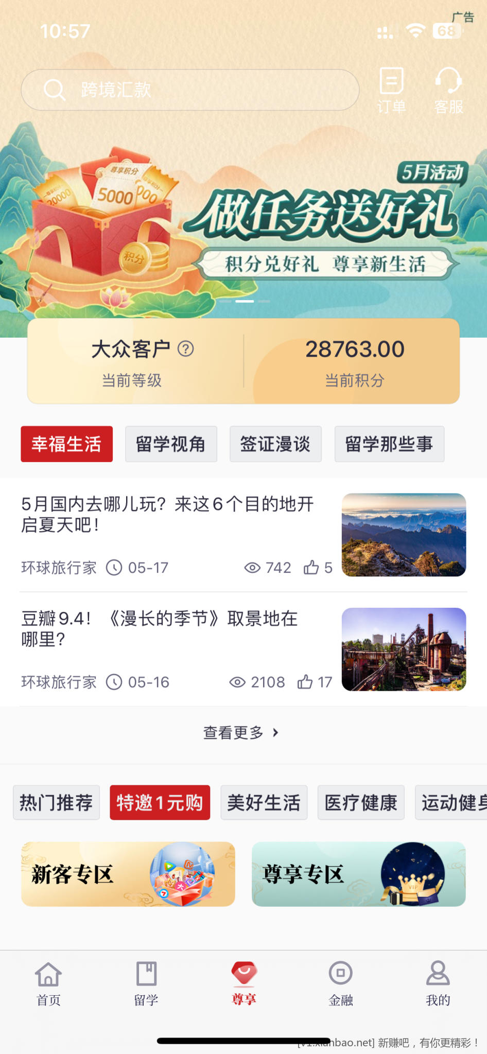 4月1日到4月30日注册的可1积分加1r换喜茶等代金券
