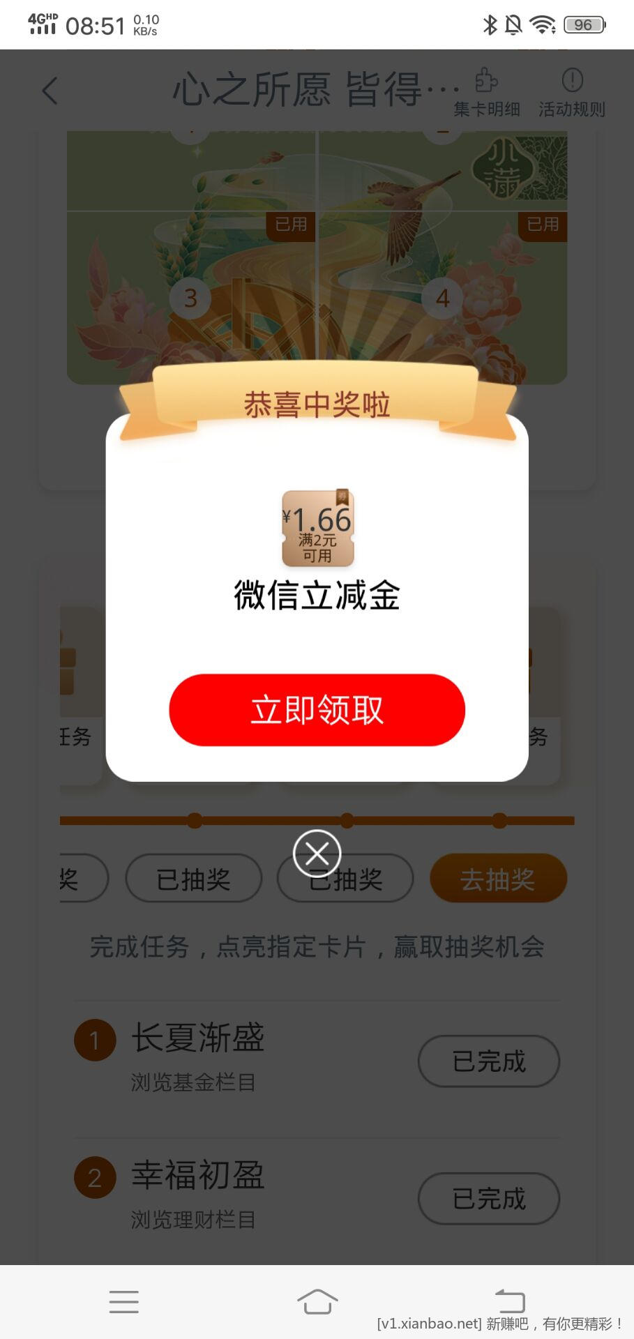 天天基金左上角任务