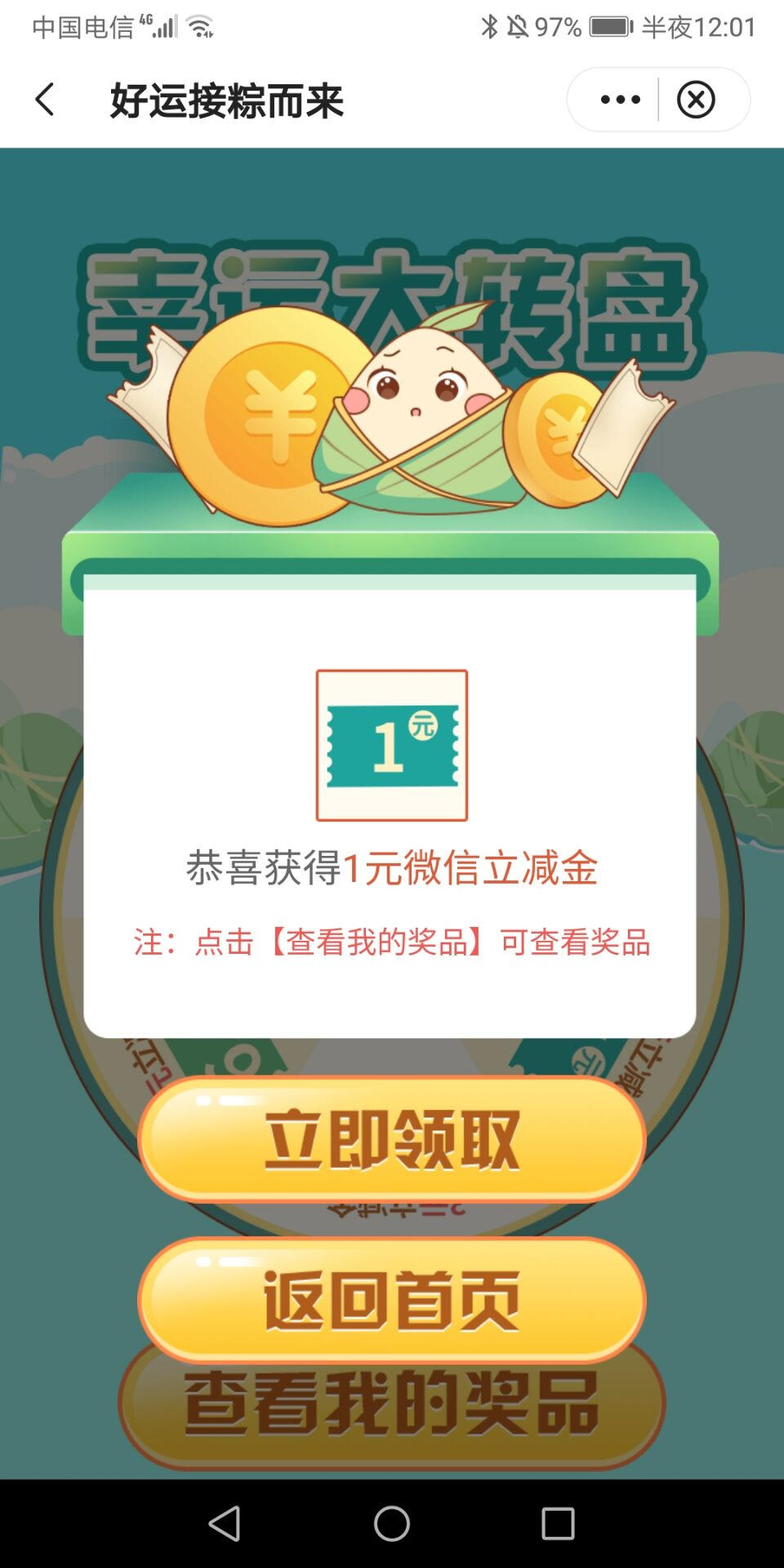 中行App-银发专区,上方滚动banner“好运接粽而来”