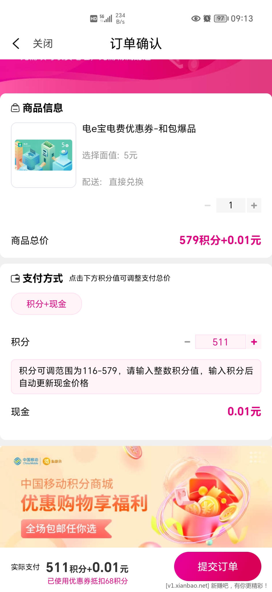 别留着兑ysf红包了,兑换国网电费券一样的效果,可以选择全积分兑换,或者积分加现金兑换,兑换后国网直接用