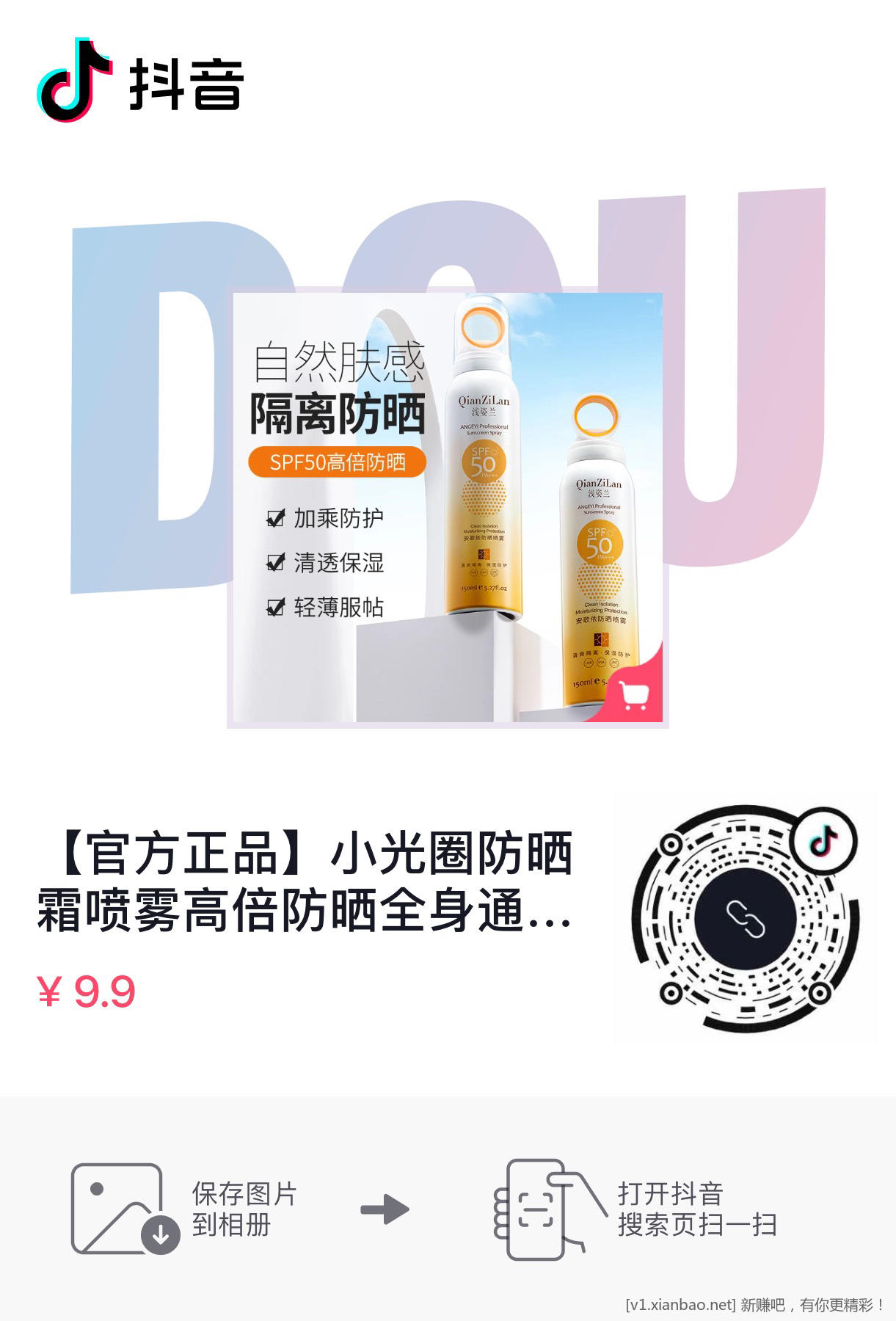 dy扫码领10抖音支付券防晒喷雾拍下选择抖音支付,0.01