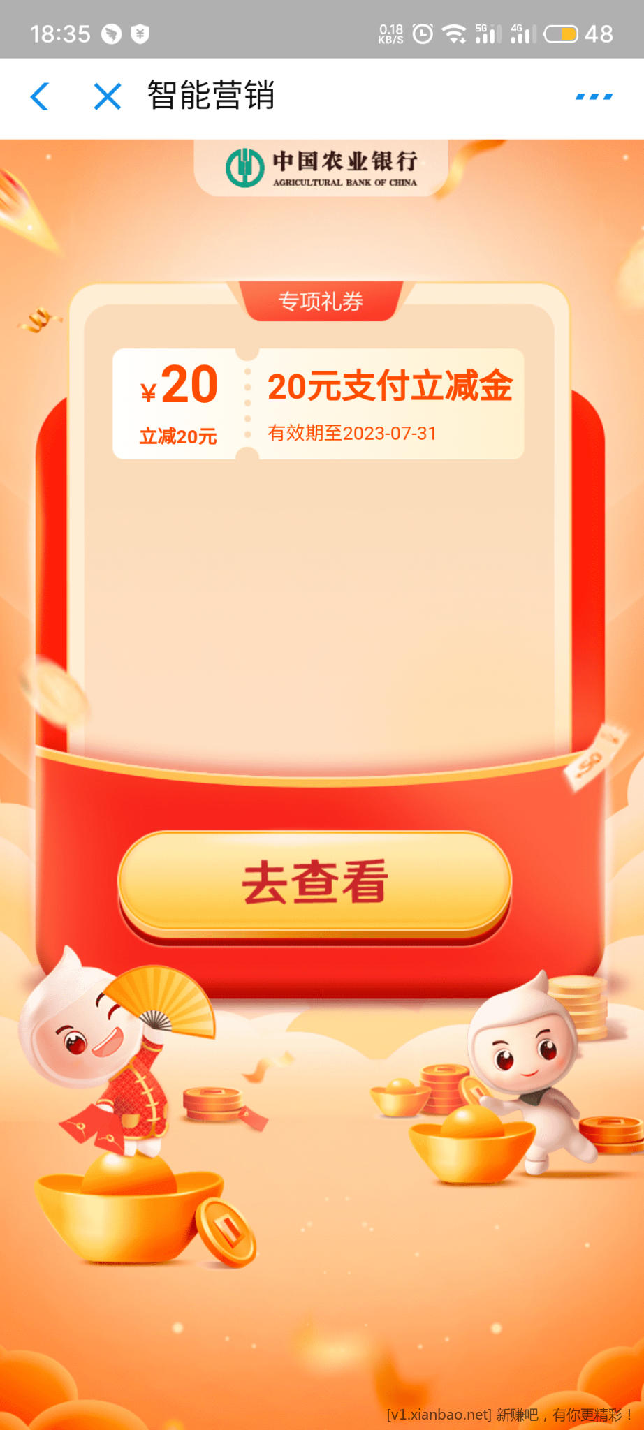 农行20元支付立减金