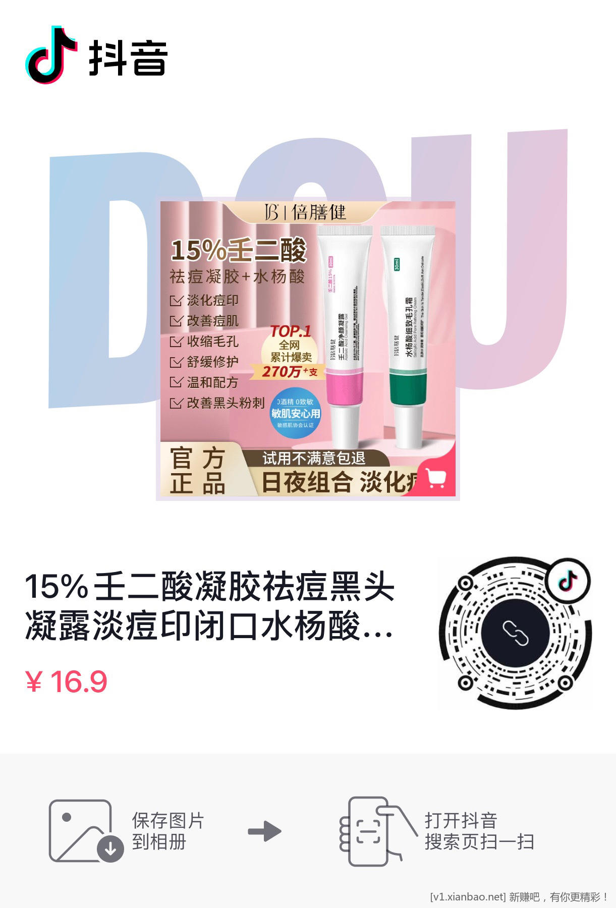 领到抖音支付10券的也可以买这个日夜修复祛痘凝胶付0.01