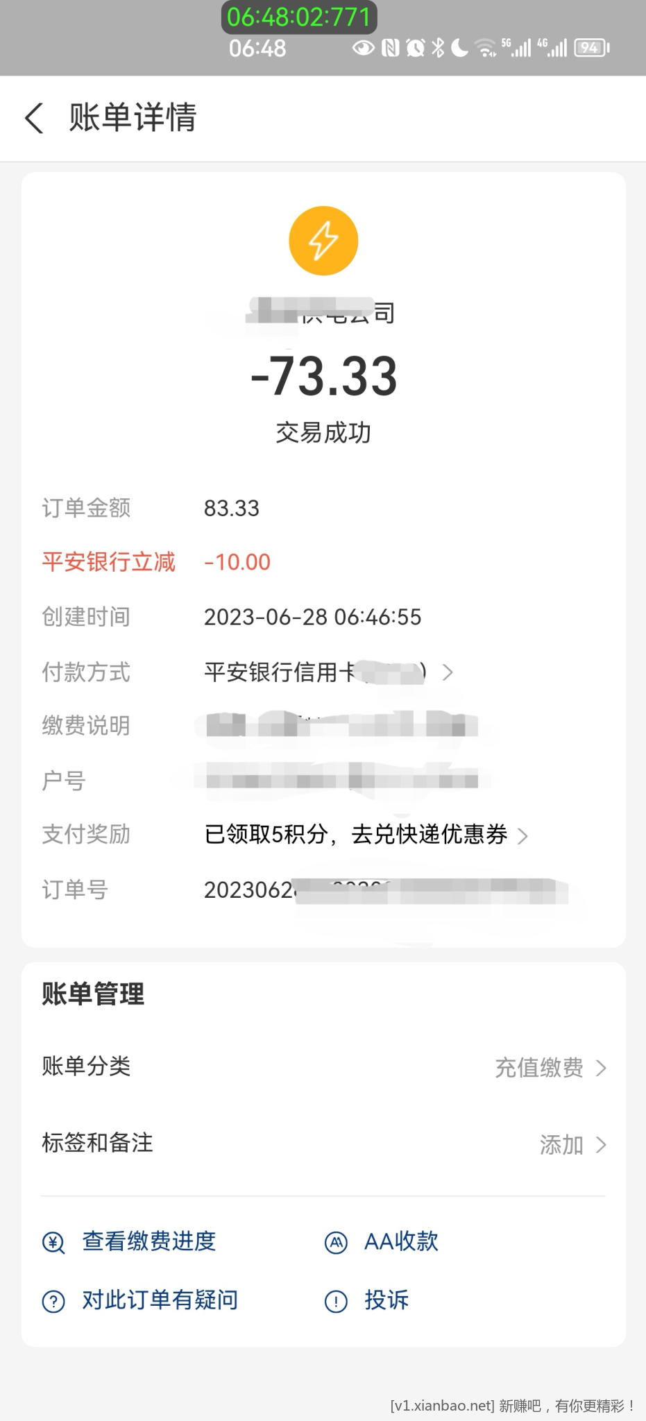 致富宝充电费平安88折 83.33-10
