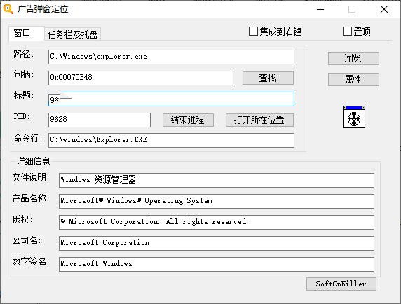 支持查看项目名、文件路径、数字签名、文件说明、产品名称等信息。
