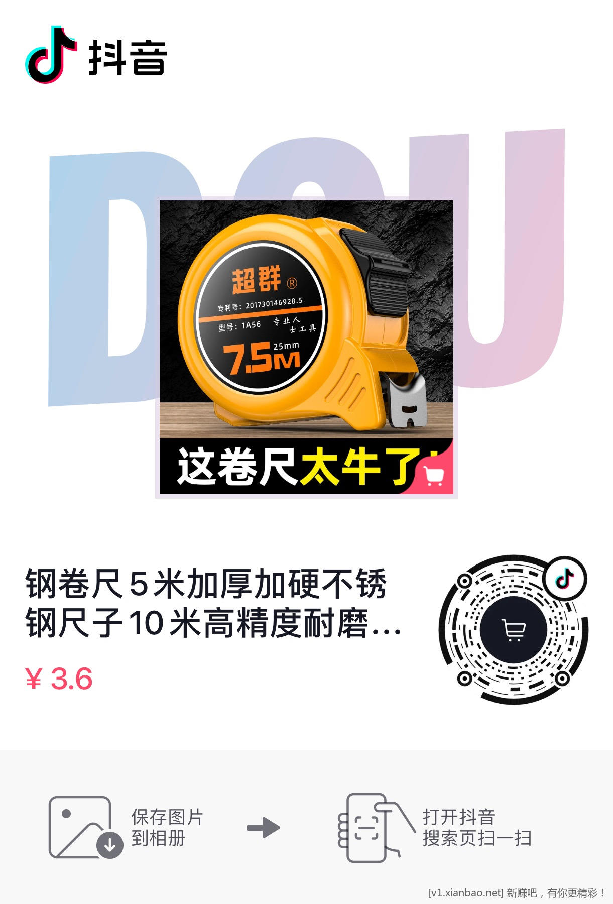 先领抖音支付3支付券和10支付券3米卷尺拍下付0.6,鸡脖拍下0.01卷尺这玩意偶尔用得着,挺实用https://v.douyin.com/i2bDeaT/
