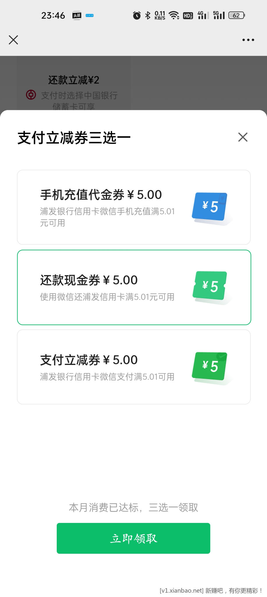 1.浦发银行xing/用卡达标可领3选1减5券2.中国银行还款1000-2具体看图