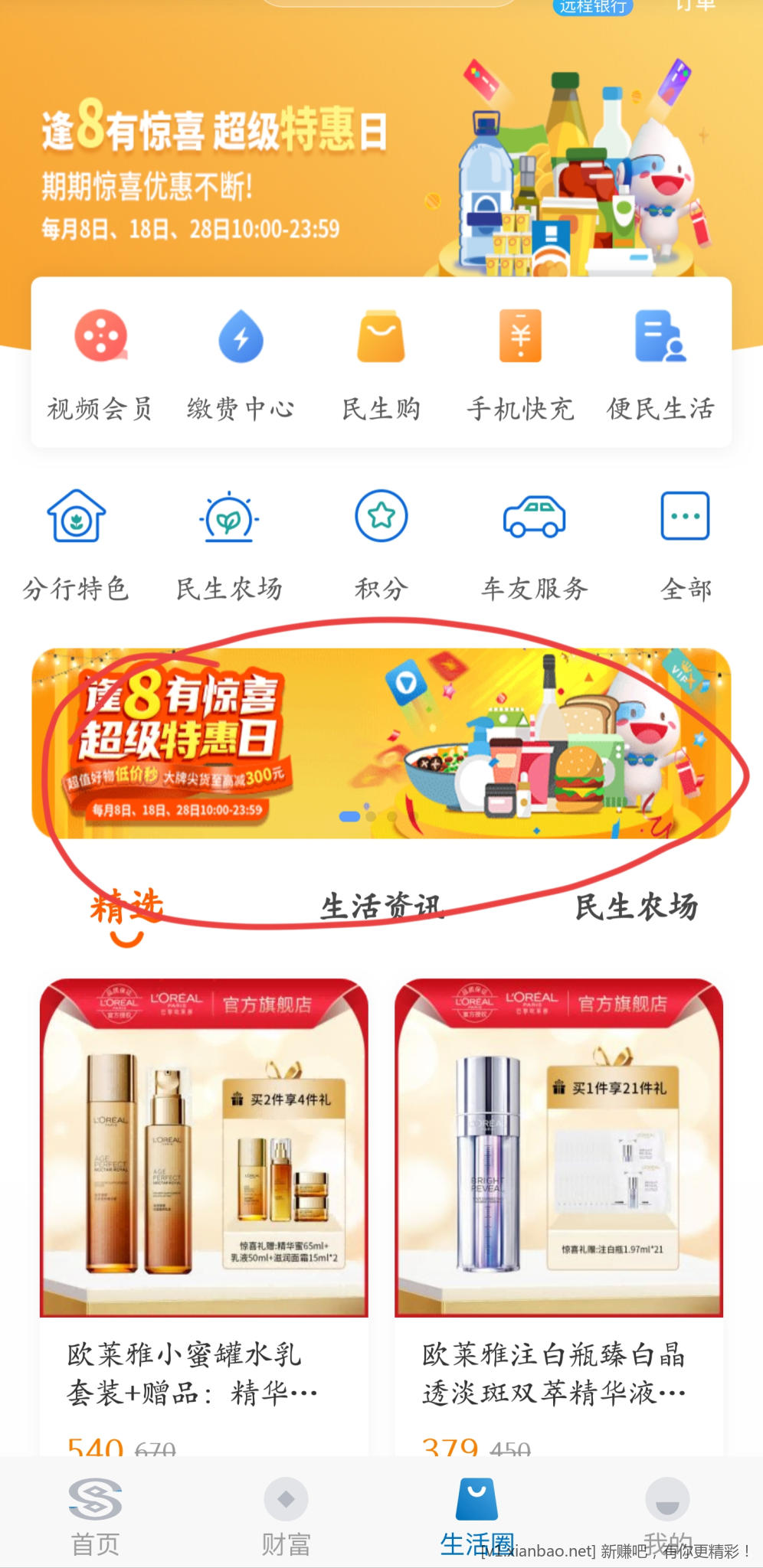 民生银行,生活圈,10点借记卡抢购,手速快的上。
