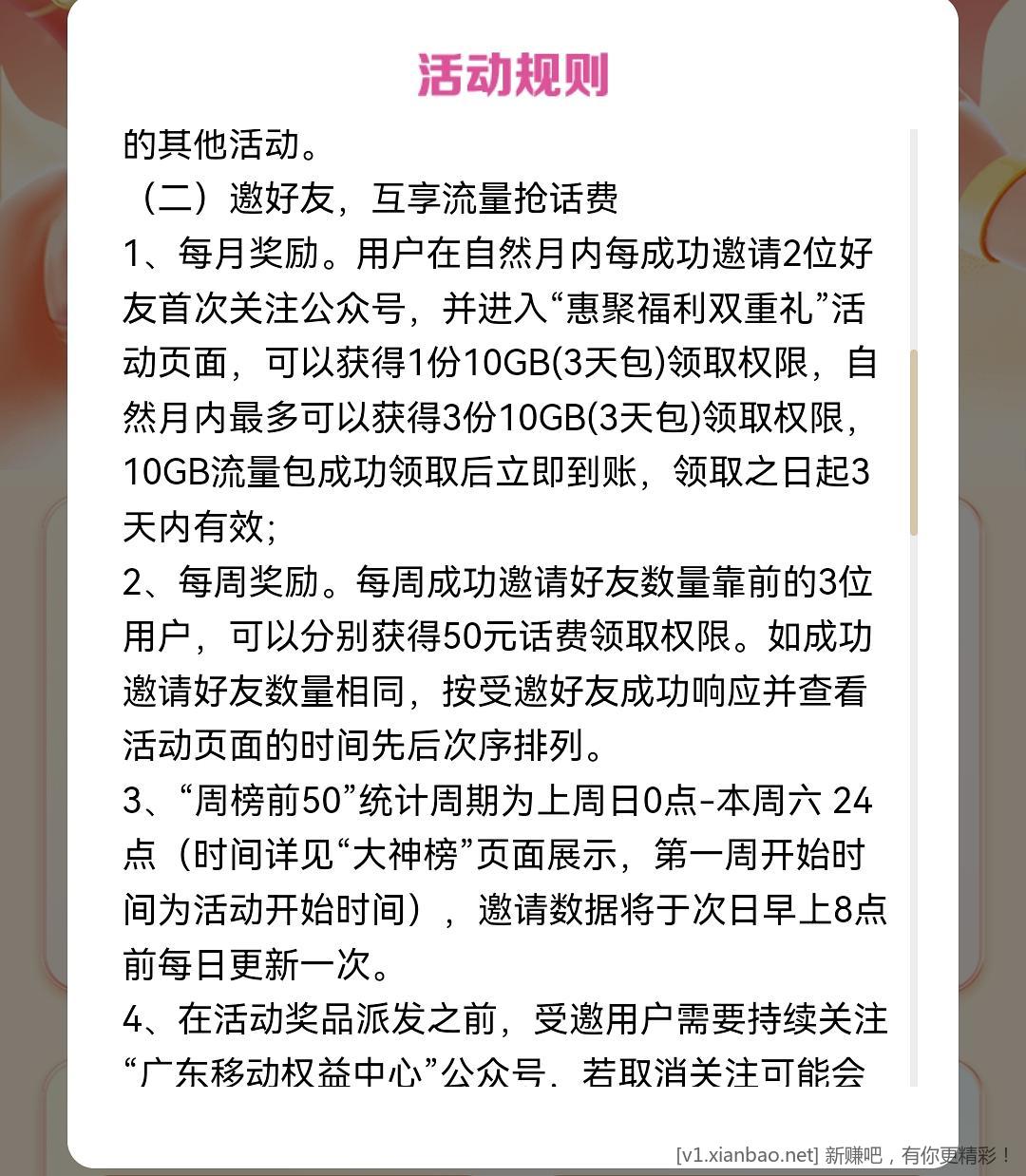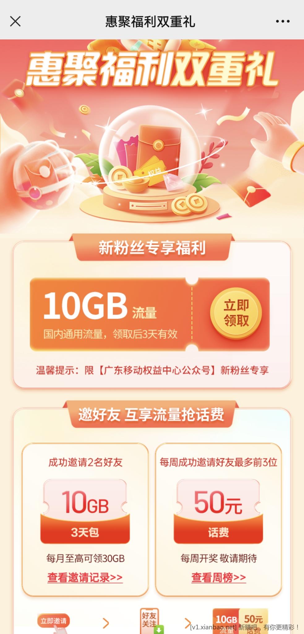 微信关注“广东移动权益中心”领10g,三天有效邀请别人关注还可以继续领