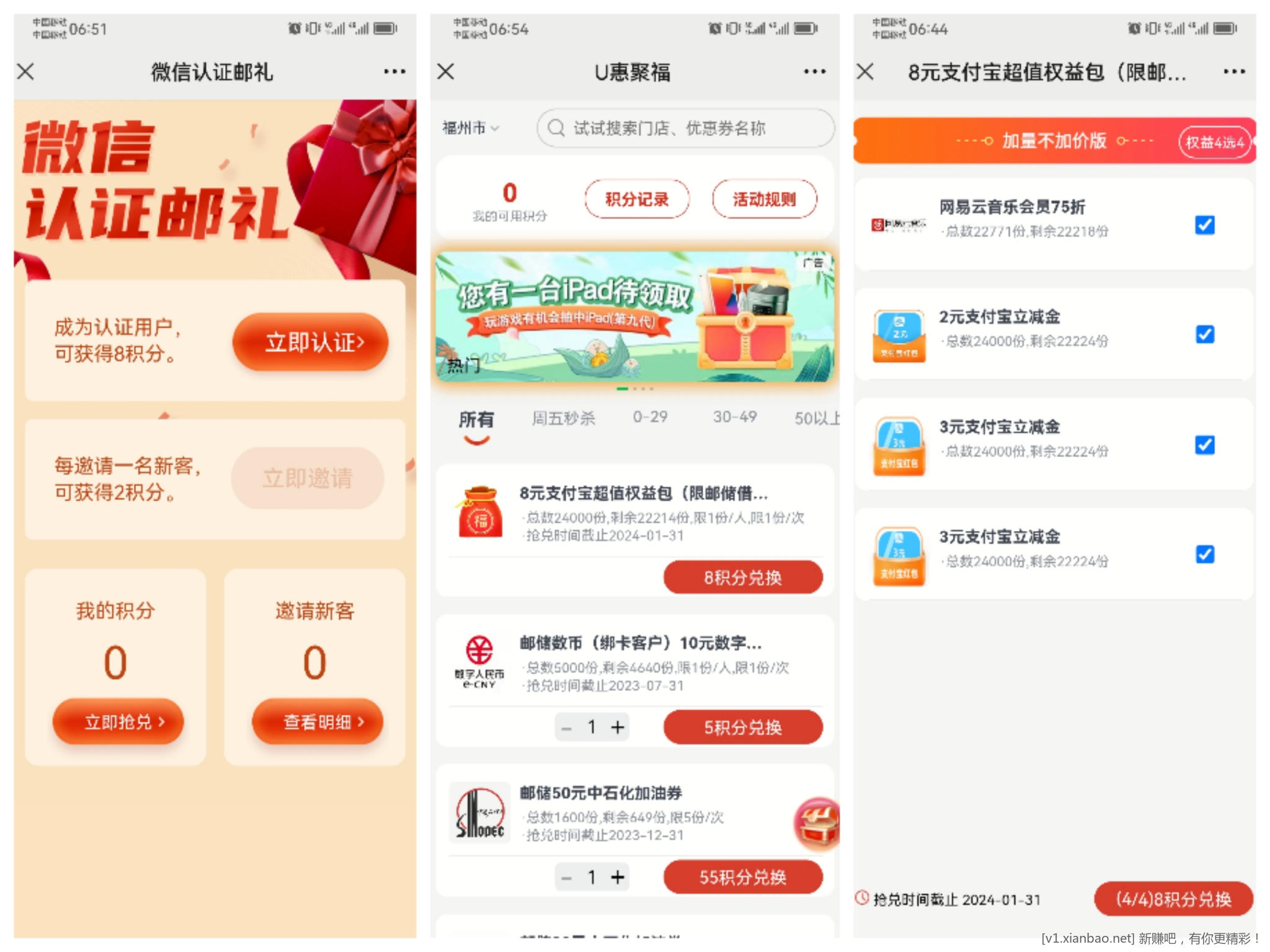 扫码关注邮储银行福建分行,实名认证后,会给8积分,已经认证过的没有,积分到账后选择兑换,8积分可以兑换一个8元立减金包,看图,扫码有邀请,一点点奖励,也可以自己关注邮储银行福建分行https://wap.fujian.psbc.com/m/002qDQ