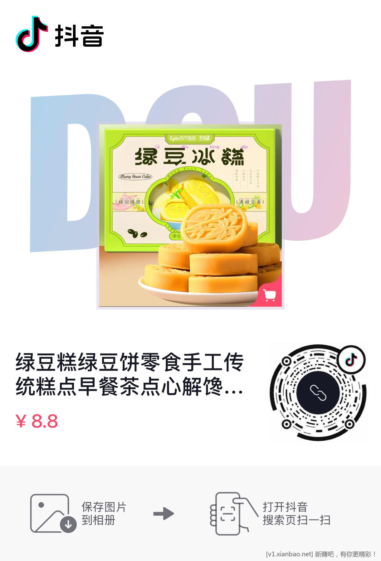 抖音商城搜“低价秒杀”,进活动页弹8-4券绿豆糕叠加1店铺新人券,500g到手3.8