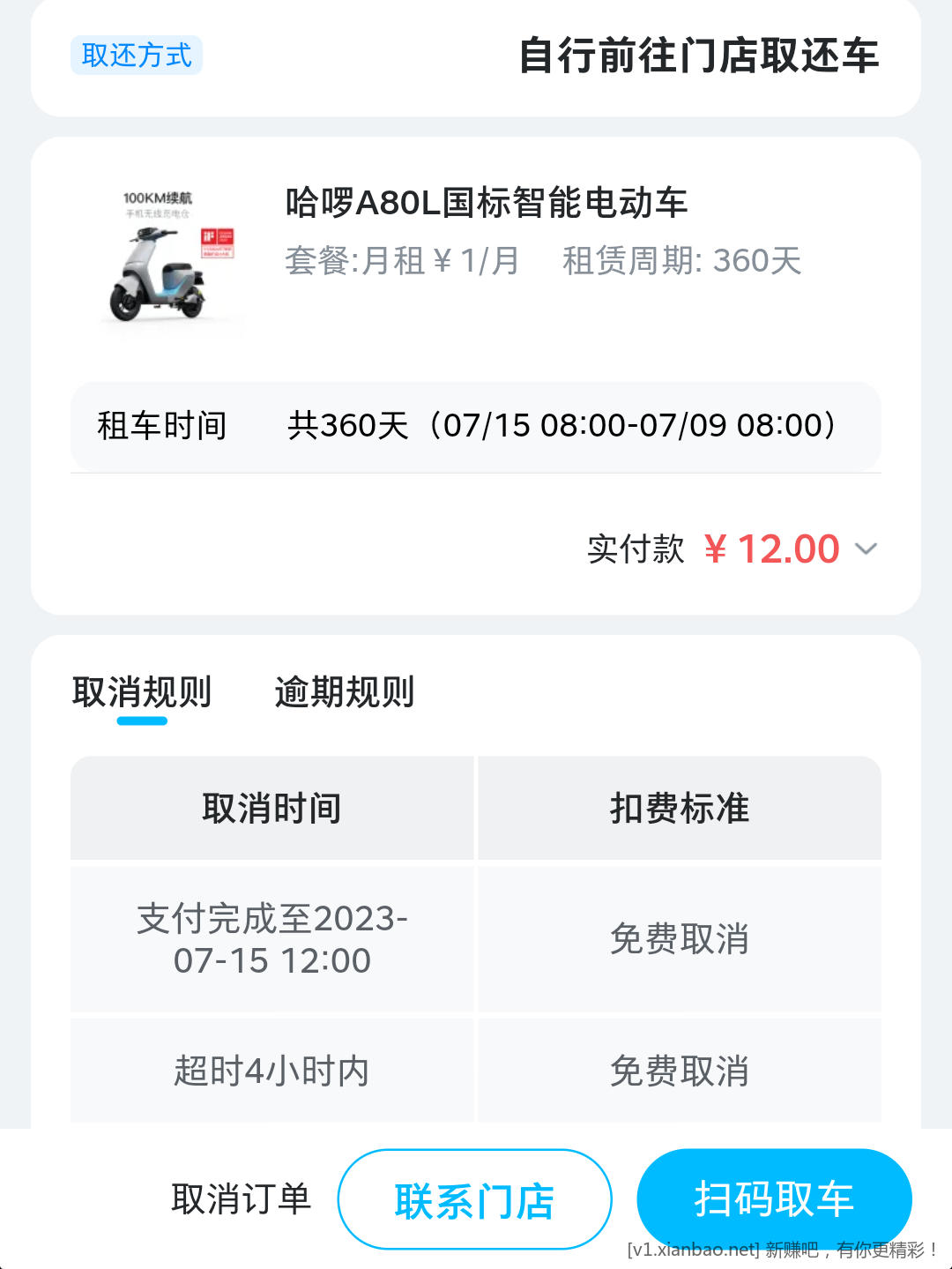 哈罗app 租电动车 选1元一个月的