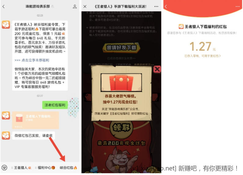 微信公众号珠能游戏俱乐部,菜单栏右下,下拉跳转浏览器下载游戏,然后进去注册实名,实名可以去百度,实名后返回下拉领取红包再回到公众号回复汪者红包福利,必中1+以上,不认设备多号多撸,老用户也可以领,下载登录游戏返回领