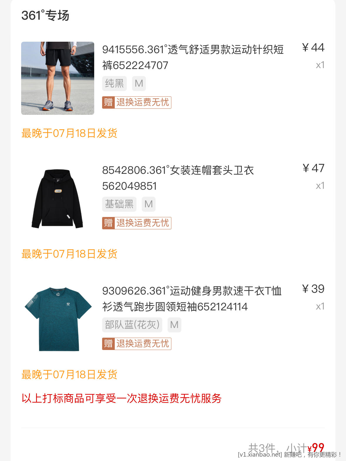 361度九十九任选三件!手慢无码