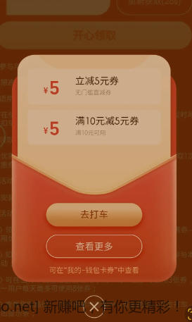 高德打车立减5元和一张10-5元券