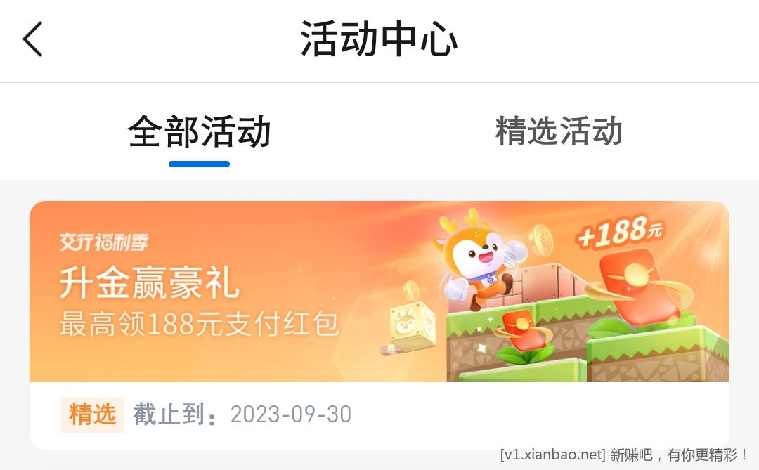 路径:交行app-个人-优惠券-活动中心-升金横幅5+5+10=20
