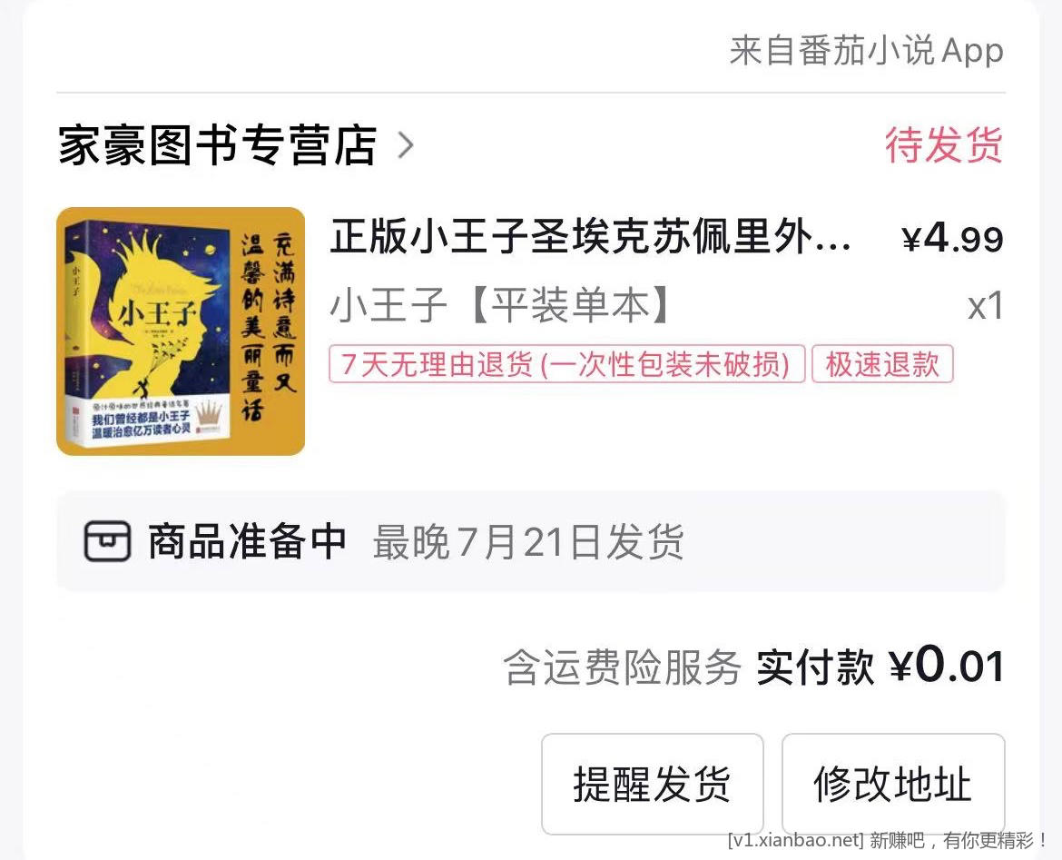 番茄小说App,抖音登陆,我的,商城部分号弹5无门槛图书0.01,无限撸步骤:先抖音扫码加购物车,再去番茄小说下单!