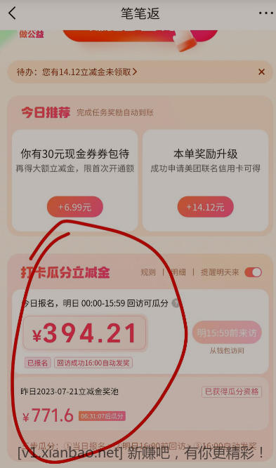 美团立减金,我的——我的钱包——立减金/笔笔返