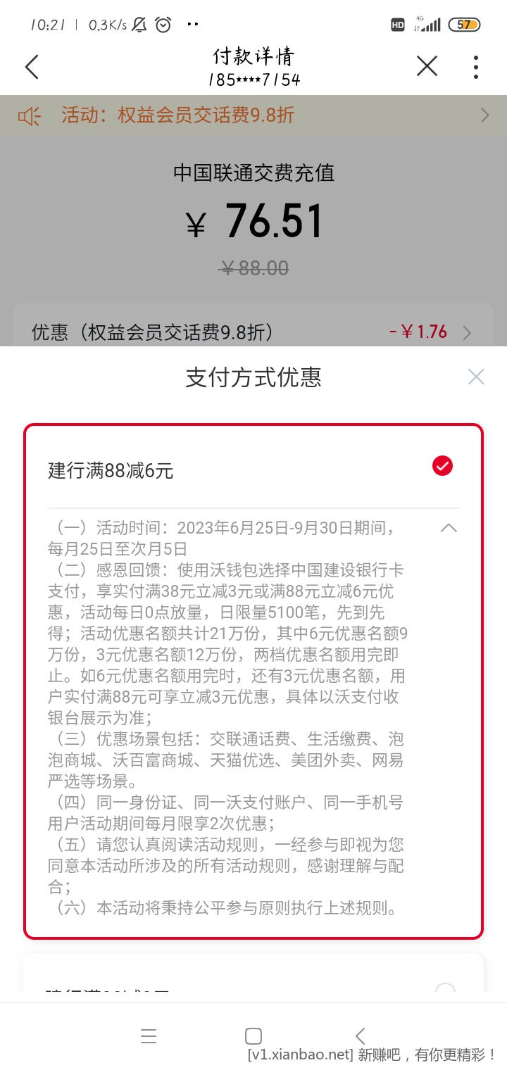 沃钱包建行卡支付88减6和38-3,还有,好用荚果