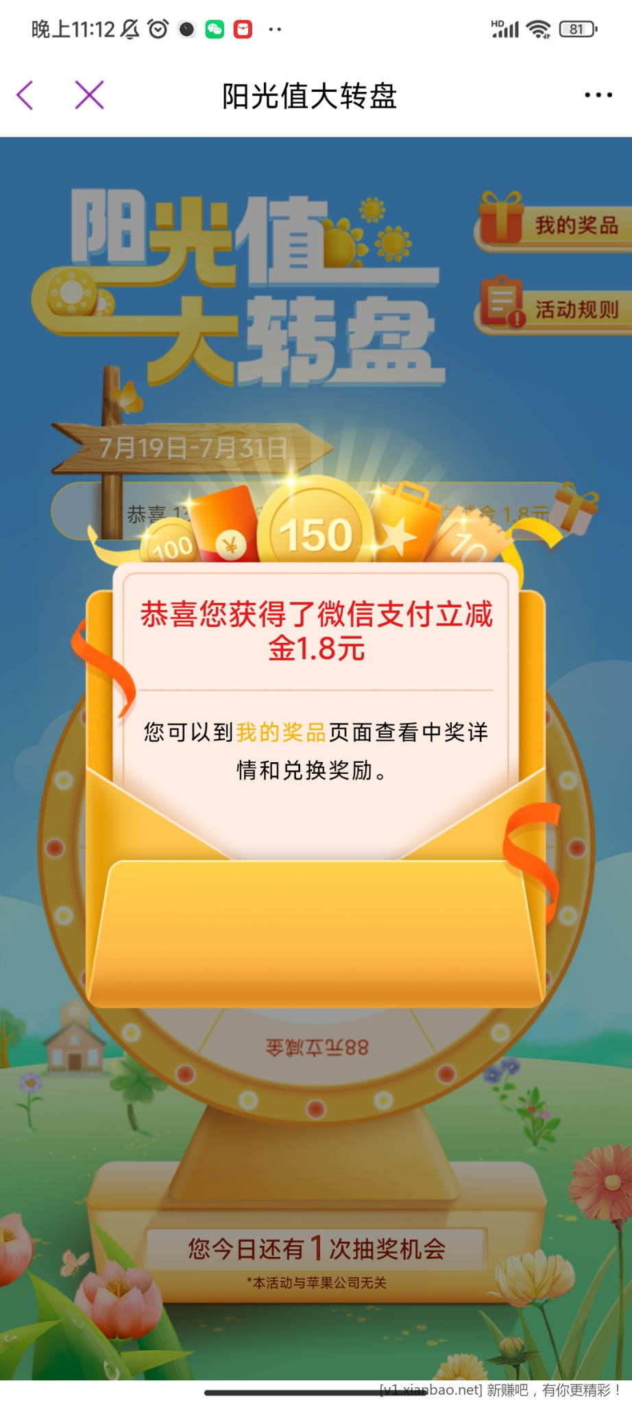 光大银行app-右下角 支付享优惠,大转盘,188阳光值抽奖