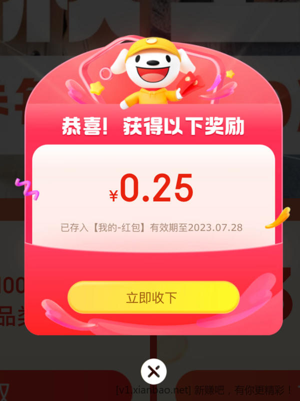 京东50-3元、100-5元全品券,0.25元弹窗红包