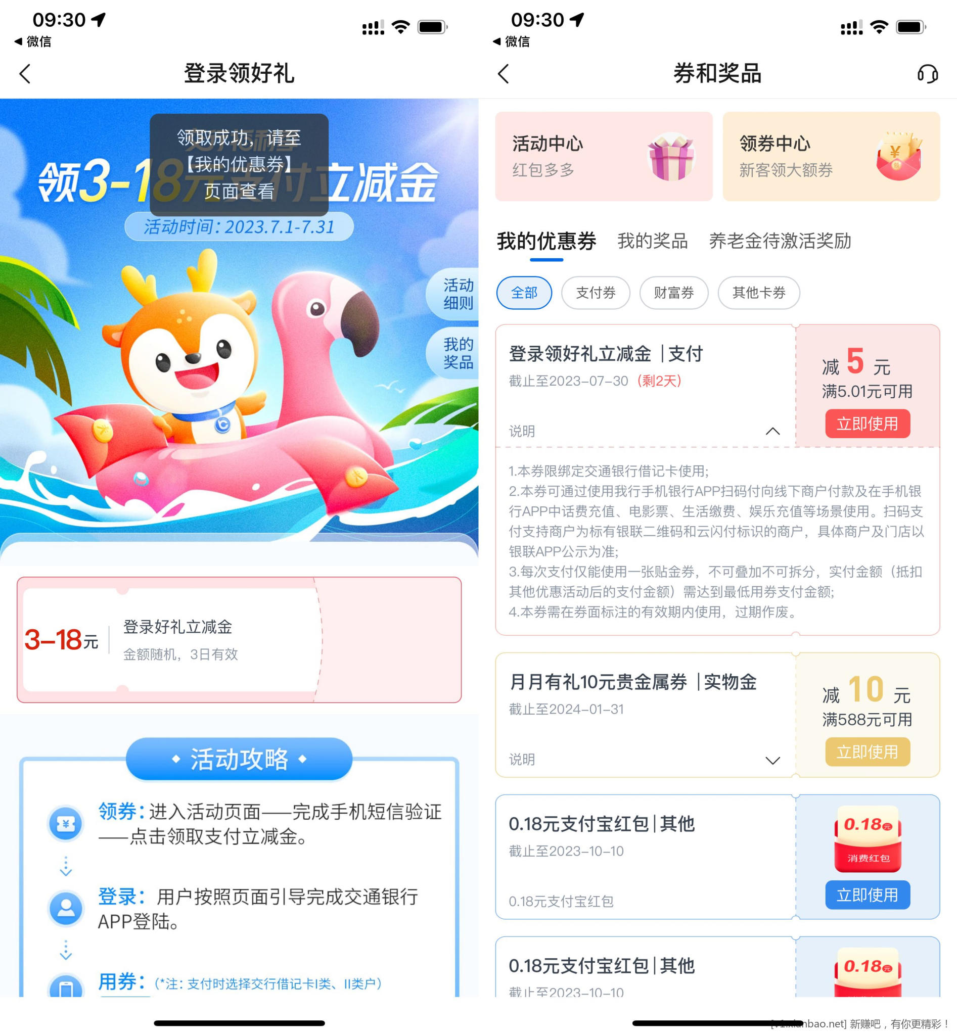 【交行福利季登录抽3~18元立减金】新一期!交行APP扫码->直接领3~18元立减金->立减金扫银联码支付即可使用https://mbank.95559.com.cn/mob ... 0230627A0000021https://mbank.95559.com.cn/mobs6/tangram/TG0/NTG0001.html?promoteCode=20230627A0000021