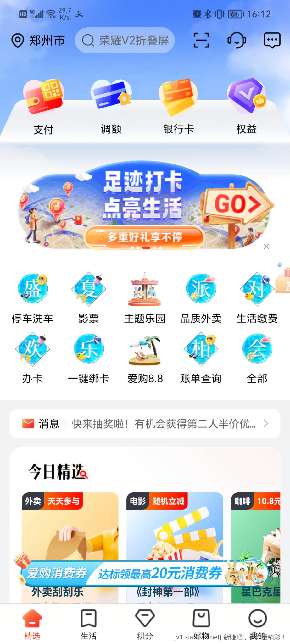工行e生活app足迹打卡抽微信立减金