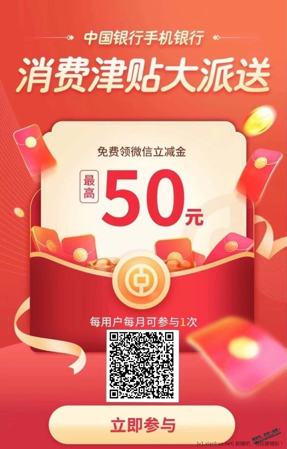 广东中行领5元微信立减金,每月一次,月底别忘了