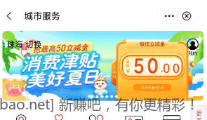 广东中行,城市服务里横幅,消费津贴活动,支付一块抽应该都是3.88