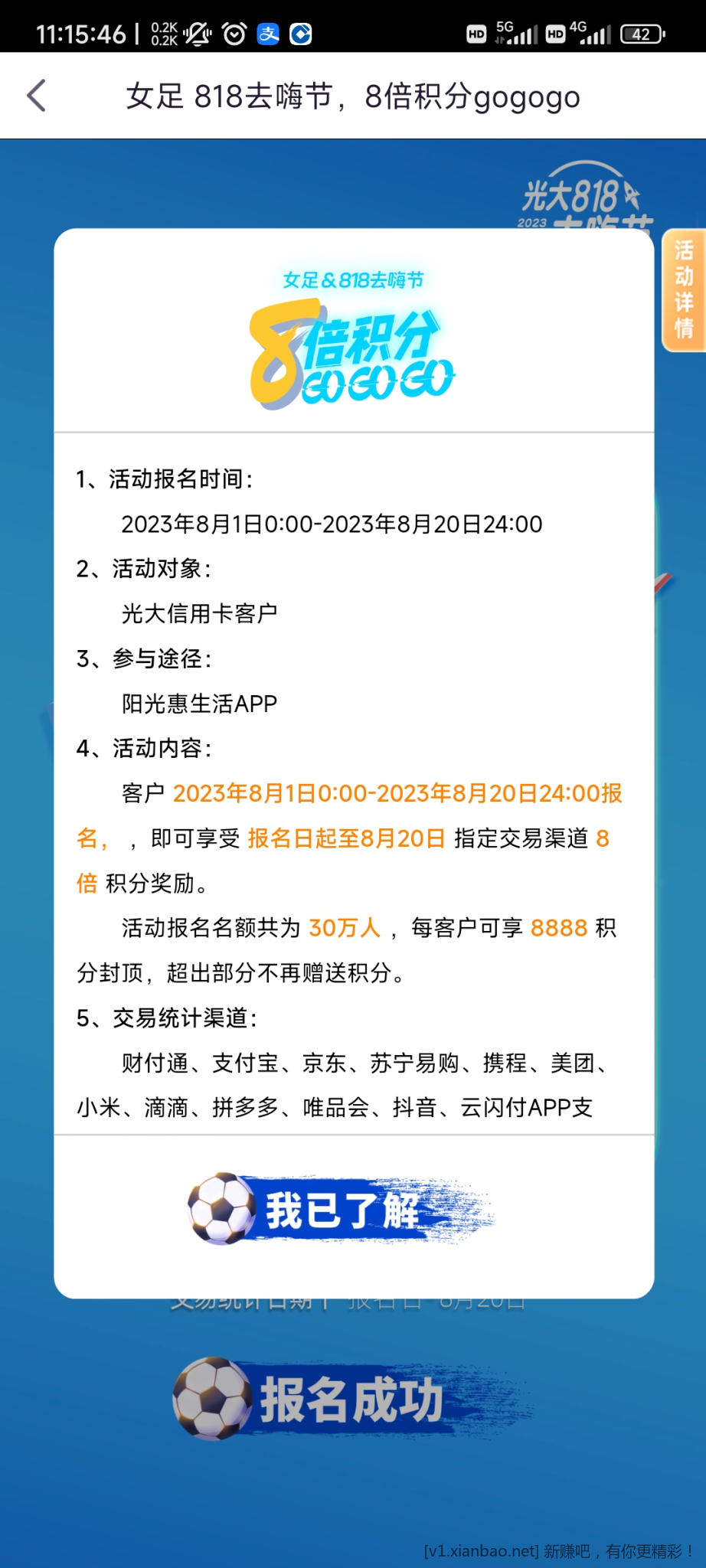 先报名,消费1111元拿满8888积分,可以等周五5倍积分一起刷卡,大佬们免费果果加几个