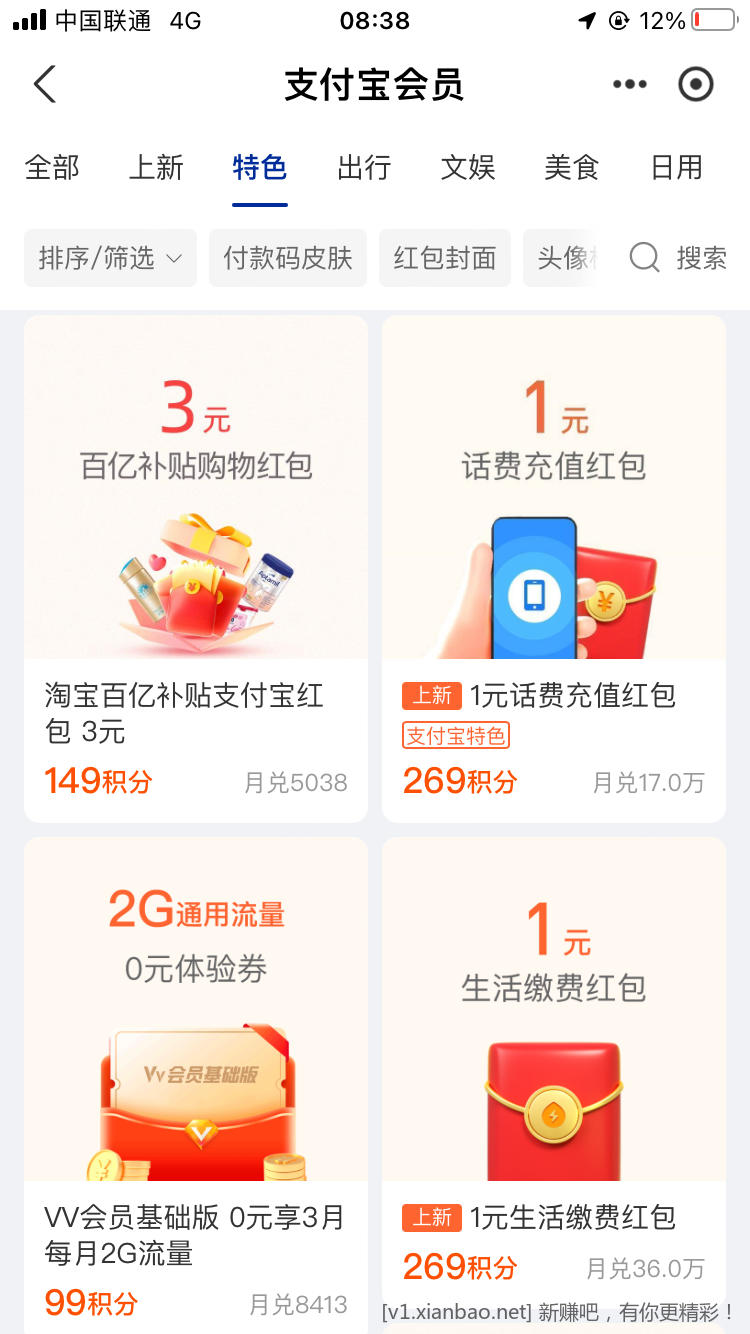 全网首发,淘宝百亿补贴红包3,支付宝积分兑换,特色