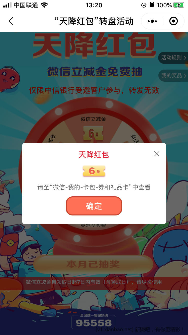 中信储蓄卡特邀抽奖 坐标江苏 其他地方自试