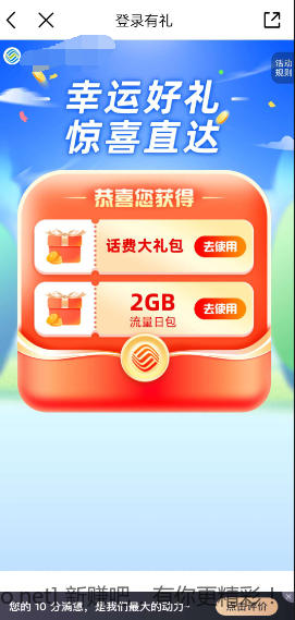 两个券共1.5元话费,还有一个2G流量日包登录中国移动直接领。活动期间,河北移动用户进入活动页面进行登录后即可直接抽取活动奖励,所获奖励将直接在活动页面展示,活动期间每个用户仅可获取一次奖励。